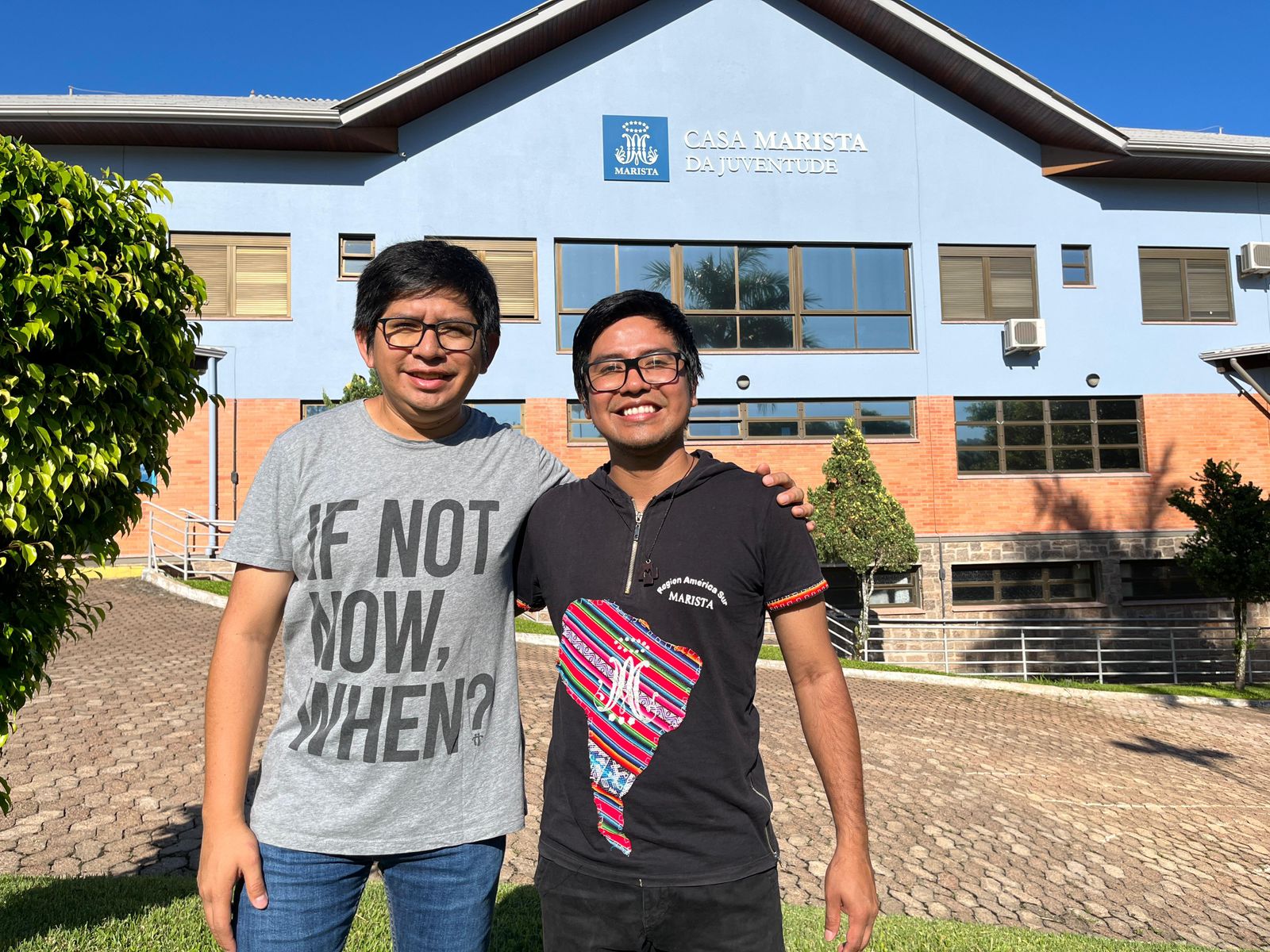 Los hermanos Alexandre Nascimento, Enos Ângelo y João Pedro participan en el encuentro por la Provincia Marista de Brasil Sul-Amazônia, de la Provincia de Brasil Centro-Norte, los hermanos Gabriel y Gustavo, por la Provincia de Brasil Centro-Sul, el Hermano José Augusto y de nuestra Provincia de Santa María de Los Andes, los Hermano Leandro Frías y Gadiel López.