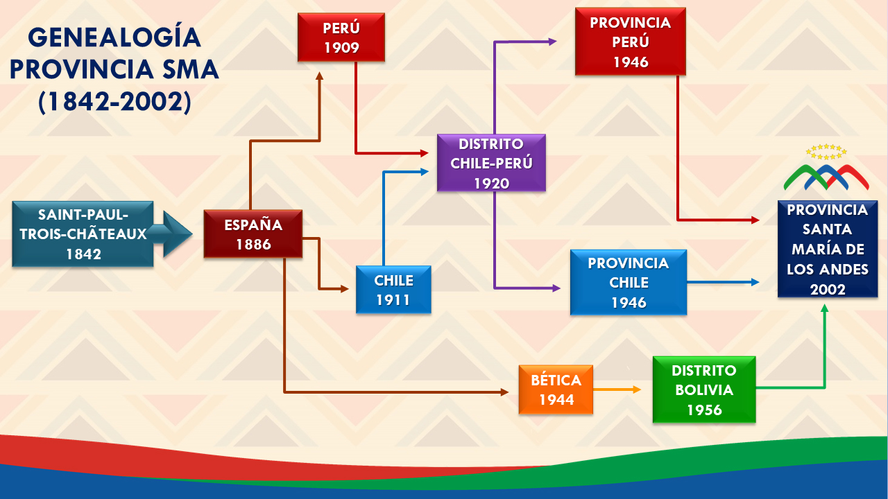Cuando hablamos de reestructuración, nuestra Provincia es bastante experta en este tema, sobre todo en nuestros orígenes: En Perú y Chile se vivió este proceso de manera similar y hasta conjunta. Primero al depender de manera directa de la Gran Provincia de España, desde su fundación hasta 1914, cuando se crea la unidad administrativa: Distrito Chile-Perú. La situación, en términos económicos y administrativos, no fue muy distinta a la vivida previamente. Esto se mantuvo hasta 1934, donde el Distrito Chile-Perú, por decisión del Consejo General, logra su independencia en temas económicos y de gestión educacional. Nos mantenemos así hasta 1946, cuando ambos países deciden separar sus caminos, dando paso a nuevas estructuras, surgiendo así las Provincias de Chile y Perú, respectivamente. En Bolivia el asunto fue similar. Desde su llegada en 1956, la Provincia Bética, cataloga su presencia como Misión Bolivia. Así se mantienen hasta 1970, cuando se "institucionaliza" aún más la acción educativa y evangelizadora, con el: Distrito Bolivia. Sin embargo, las condiciones económicas y administrativas, son similares al período anterior, al mantenerse la "interdependencia" con la Provincia fundadora.