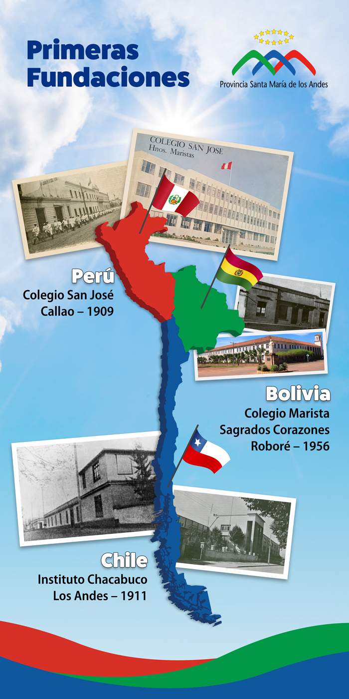 Así fueron los inicios de la presencia marista en Perú, Chile y Bolivia, es decir, los cimientos en donde se edifica y mantiene actualmente la Provincia Santa María de los Andes. Son 20 años de reencarnar el carisma en esta porción del mundo, 20 años de reconocer los aportes de una historia pasada que posibilita la renovación, 20 años de buscar y fomentar en cada una de nuestras presencias, espacios de fraternidad, en donde compartamos la vida, la fe y la misión de evangelizar desde la educación a los niños, niñas, adolescentes y jóvenes, en forma prioritaria a los que están en situación de pobreza y vulnerabilidad. Pero también, son 20 años de omisiones y errores que, asumimos con una actitud orante, de perdón, responsabilidad y compromiso en la promoción y defensa férrea de los derechos de los NNAJ.
