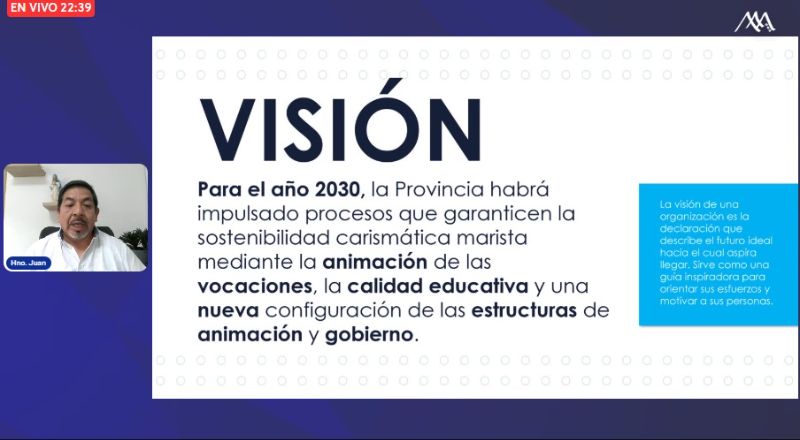 Por medio de un Evento Virtual al que se conectaron Maristas de Bolivia, Chile y Perú, se presentó el nuevo Plan Estratégico Provincial. El Evento contó con la Bienvenida de nuestro Provincial Hno. Pablo González quien dirigió una oración e introdujo el tema, luego el Hno. Marlon Poicón, integrante del Consejo Provincial, fue presentando a los diferentes Hermanos que dieron a conocer el Plan.