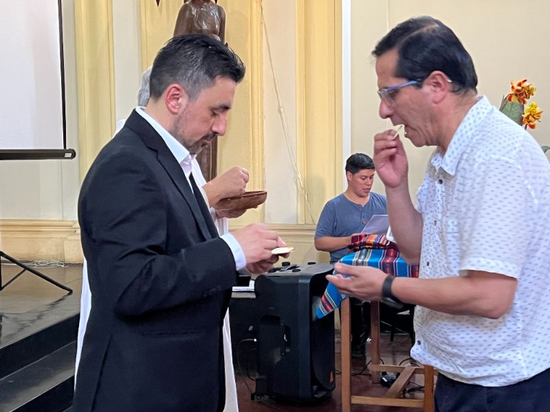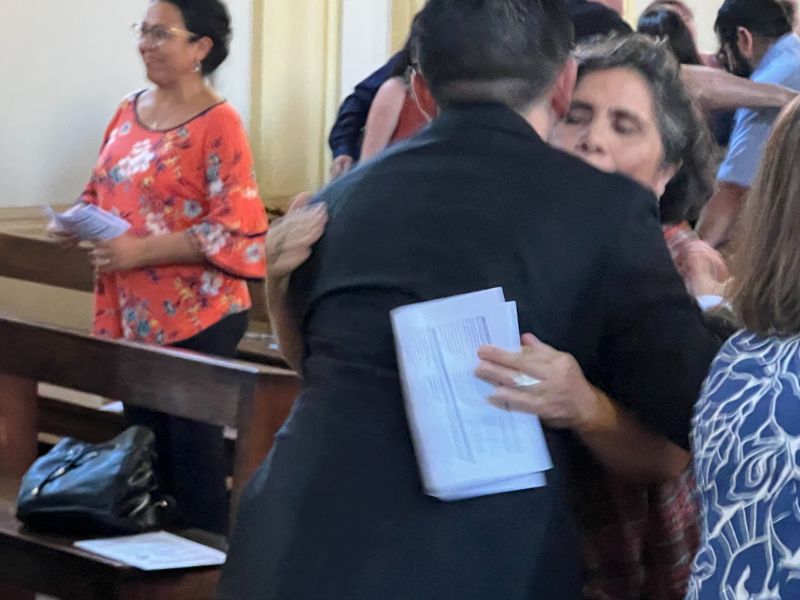 La ceremonia comenzó con la acogida e ingreso del Hermano Álvaro, junto al sacerdote celebrante, acompañado por su familia y cercanos. Ya iniciada la eucaristía, se compartió un video con saludos y testimonios de personas significativas en su vida y misión, provenientes tanto de su entorno familiar como de los diversos espacios donde ha servido a lo largo de su trayectoria.